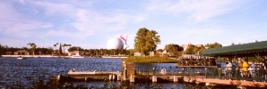 ワールド・ショーケースから見たフューチャー・ワールド この池をぐるっと一周するだけで1時間以上かかってしまう。 広い |