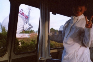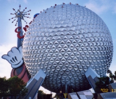 未来と世界旅行が体験できる万博のようなテーマパーク←このでっかい銀色ボールが目印。 この中ではタイムマシンに乗って人間のコミュニケーションの進化を体験できる。 動きがゆっくりなんで、ジェットコースターばかり乗ってる子供たちにはモノ足りなかったみたい。 |