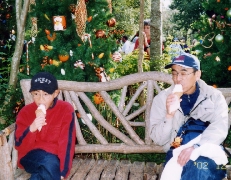 アニマルキングダムなんだから やっぱターキーの足を食べなくっちゃ ココのは薫製だったのでユニバーサルで食べたのより美味しかった。 売店のおばちゃんはやたら話し好き、陽気な人だった。 |