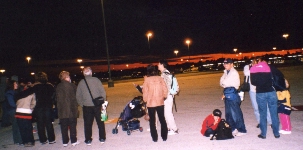 ホテルへのバスを待つ行列 毎晩 こんな感じで帰路についてた 日が暮れると寒いんだよね。 |