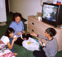 ![]() 毎朝 こんな感じで天気予報を横目に朝食 ホテル内ピクニック (^_^) 高級ホテルよりモーターイン(モーテルの方が分かりやすいかな) の方が我々には似合ってる。 |